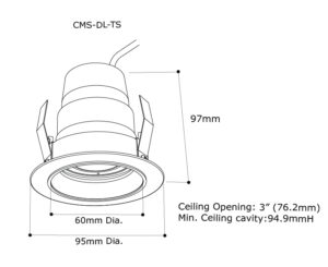 Size: 95mm dia. x 57.7mm / 97mmH (including CMS spotlight),